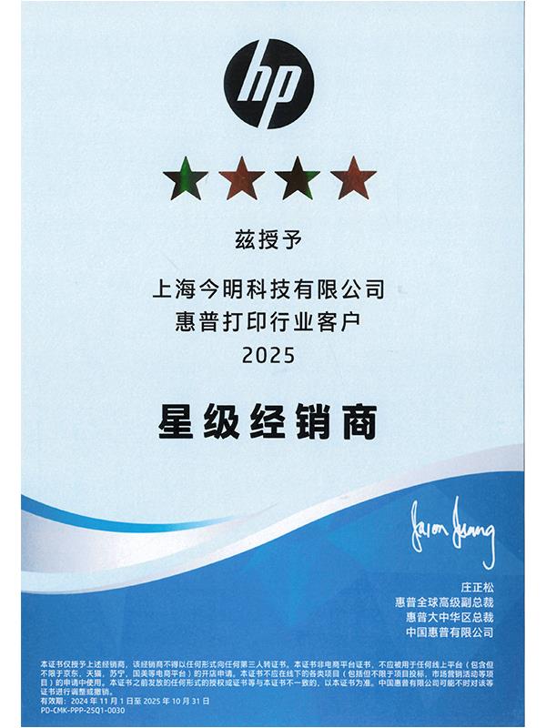 • 2025年惠普打印機(jī)星級經(jīng)銷商